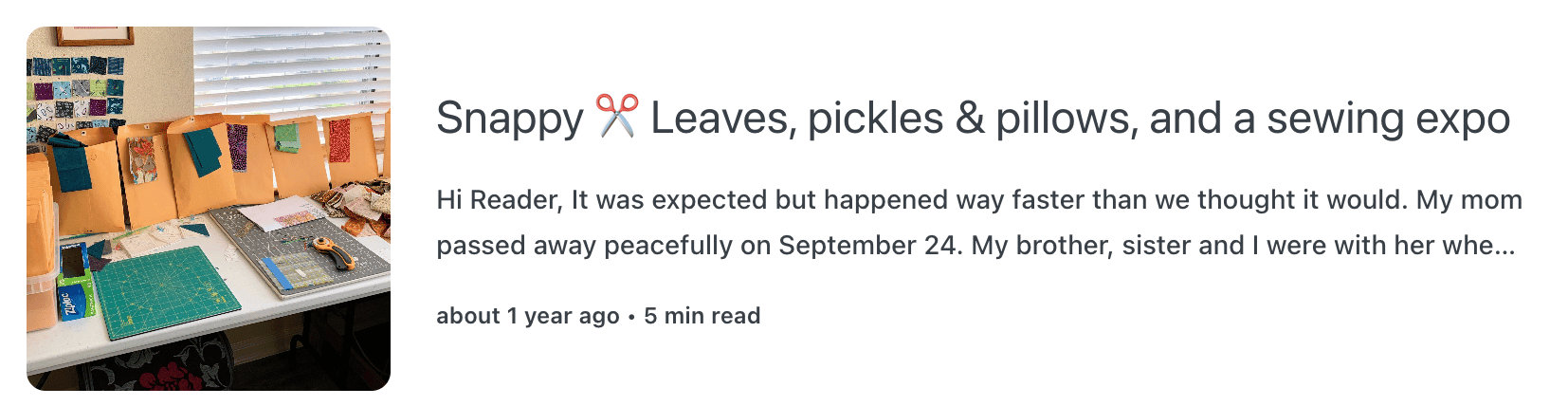 Hi Reader, Have you ever felt like you're living in a fog? I have felt like that for the past 12 months. Handling my mother's estate required a lot of mental bandwidth. I wasn't prepared for how much was involved to wrap up someone's life. Everything has seemed like a struggle. That's the main reason why you haven't received a newsletter from me since May. It's been almost a year since she passed away, and during this time, I unintentionally put sewing on hold as even the simplest projects...