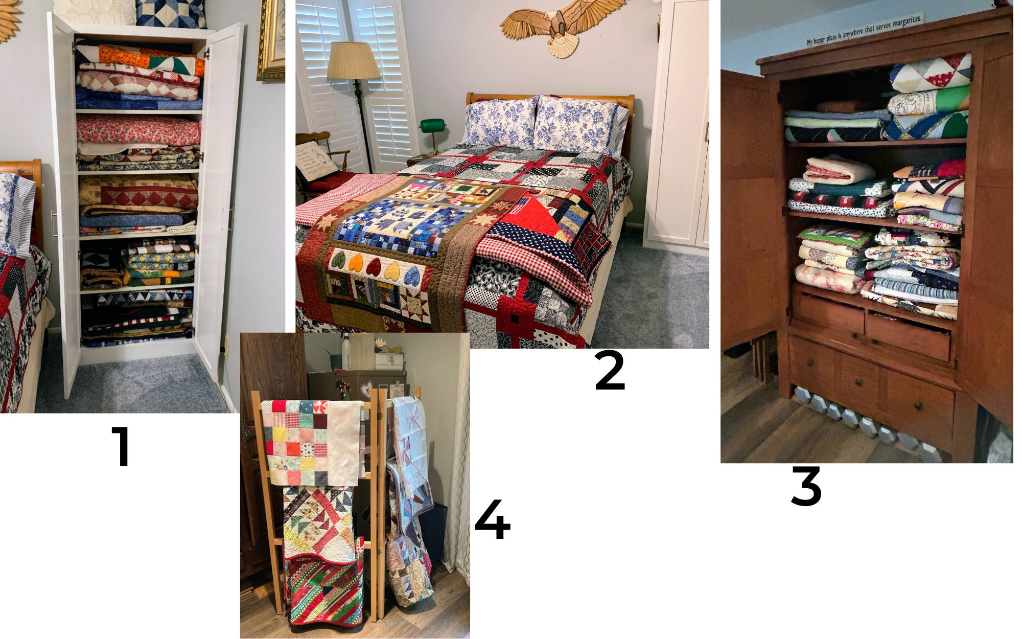 Hi Reader, Is storing finished projects a problem for you? Making things is always a lot of fun, but unless you're selling or giving away them away as gifts or donations, it doesn't take long before all those wonderful projects start taking up space. One of my readers sent me this reply after the last Snappy Scissors newsletter: Nicki, one of my challenges in my 2 bedroom/3 closet house is where and how to store my finished quilts. I only have one bed to put them under and it's low to the ground, which doesn't leave much room. I can't store them in the garage because I also live in Texas (Sugar Land) and it's way too hot. I have no attic space either and it would be too hot also. Any suggestions would help. Thanks so much!